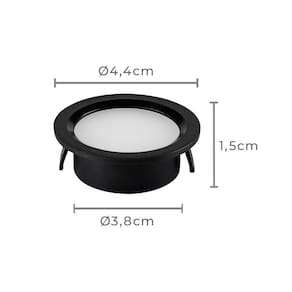 Dimensões AxLxP (mm): 15x44x44 Material: Policarbonato Garantia: 1 ano junto ao fabricante Grau de Proteção: IP 20 Local de Uso: Interno Formato: Redondo Ângulo de Abertura: 150° Fator de Potência: maior ou igual a 0,50 Fluxo Luminoso: 80 lúmens Potência: 2W Modelo/Tecnologia: LED Embutido Temperatura da Cor: 4000K - Neutra IRC (Índice de Reprodução de Cor): maior ou igual a 80 Voltagem: Bivolt Recuado: Sim