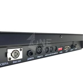 Possui conexão dmx in/out, smtpe para programação sincronizada com ajustes independentes de cena e tempo de preset junto ao crossfade.