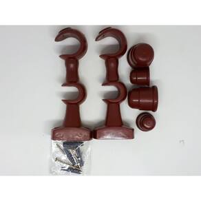 Suporte Duplo de plástico para 2 varões de 19MM e outro de 28MM de Diametro. PAR Cor : Mogno. Especifiçações dos Suportes: Altura 5,5 CM Comprimento 15,5 CM Contem no produto: 2 Suportes 2 Ponteiras 19MM 2 Ponteiras 28MM 4 Parafusos 4 Buchas Marca: Reibraz Ean: 7898446684310