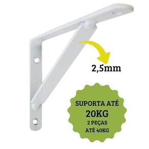 Kit 2 Suporte Mão Francesa Para Sustentar Prateleira 25cm O Suporte Mao Francesa é ideal para instalar prateleiras de madeira que servem para organizar livros, porta-retratos, enfeites e utensílios domésticos. Feitas de Ferro, você mesmo pode instalar as Cantoneiras. Conteúdo da embalagem: 2un Mão francesa não acompanha Parafusos Especificações técnicas: - Tamanho REAL conforme o anúncio - Suporta até 20kg por cantoneira 40kg o par , respeitando o espaçamento máximo de 50cm entre as mãos francesas. - Cuidado com anúncios que oferecem parafusos menores. A capacidade máxima de sustentação das buchas de expansão de nylon é conseguida utilizando parafusos de maior diâmetro possível e que ultrapassem a ponta da bucha num comprimento igual ao diâmetro do parafuso 10mm . - Barra diagonal com solda reforçada; - Fabricado em aço carbono, resistente e durável. - Pintura eletrostática na cor branca, garantindo alta resistência, melhor acabamento e uniformidade; - 3 meses contra defeitos de fabricação. - Design tradicional e discreto ideal para qualquer tipo de ambiente. Possui furos para fixação na parede e no objeto que se irá apoiar. - Acompanha buchas e parafusos Não - O tamanho do suporte é igual ao anunciado Sim - Qual a distância ideal entre as mãos francesas Recomenda-se instalar com a distância máxima de 50 cm entre as mãos francesas, para garantir uma melhor sustentabilidade. - Qual a distância ideal entre uma prateleira e outra Para acomodar objetos grandes é necessário que haja uma distância de 50 a 60 cm. - Posso instalar o produto em Gesso e Drywall Se a parede for de drywall ou gesso, é necessário um reforço estrutural no local, além de buchas especiais. Utilize cargas baixas, de preferência 2 kg por ponto de fixação. - Qual tamanho ideal da prateleira No geral, prateleiras com 35 cm de profundidade tendem a comportar todos os tipos de livros inclusive de artes e fotografia, por exemplo . Prateleiras estreitas, de 20 cm, comportam livros de leitura. O ideal é que, caso você tenha muitos livros grandes, meça-os para ter certeza da profundidade da prateleira. - Qual a altura ideal para instalar a prateleira Com a ajuda de uma trena, meça a altura que a prateleira deve ficar. A altura indicada é diante dos olhos, ou seja, não tão alto e nem tão baixo. As medidas padrões para instalar prateleiras são entre 1,65mts e 1,75mts a partir do chão. Marca: Não Informado Ean: 7908459127572