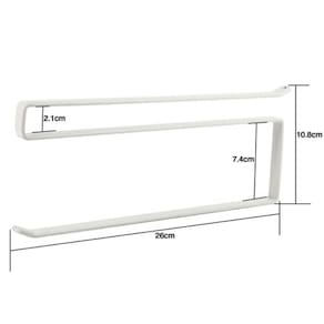Especificações Técnica Acabamento: Pintura Epóxi. Cor: Branco. Material: Barra chata de Alumínio maciço Largura da barra chata:1.6cm Espessura da barra chata: 3.4mm Medida da peça: Comprimento: 26cm Altura total: 10.8cm Altura para encaixe na prateleira: 2.1cm Altura entre encaixe da prateleira até a haste que encaixa o rolo: 7.4cm