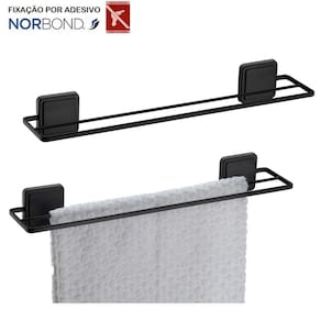 Kit 2 Suporte Porta Toalha Toalheiro Duplo 45cm Banheiro Adesivo Dupla Face Preto Fosco - Future