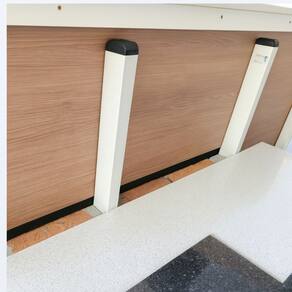 Fabricados em tubo metalon 50 x 30 mm, cada suporte conta com trava metálica para impedir o deslizamento da pedra, oferecendo máxima estabilidade e segurança.