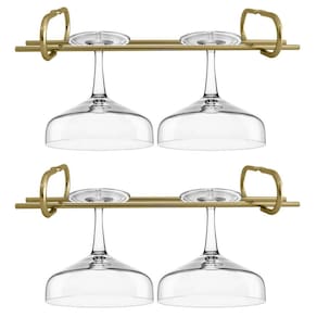 Kit 2 Suportes Porta Taças Dourado Reto 25cm Organizador Suspenso MS Aramados.