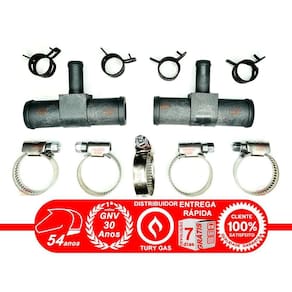 2 T de REDUÇÃO para MANGUEIRA de ÁGUA e 9 ABRAÇADEIRASÉ necessário ligar a água quente no Redutor de Pressão de kit's GNV de qualquer geração. O objetivo é aquecer o Redutor que gera uma temperatura que chega a congelar e bloquear o gás.E para isso não se deve interromper a circulação de água para conectar o sistema de arrefecimento ao redutor visando equilibrar a temperatura de funcionamento do redutor para mais próximo da temperatura do motor e assim evitam o congelamento do redutor e os danos causados por choques térmicos ao motor assim como melhora a combustão do gás.Medida das conexões da mangueira do carro de 19 mmMedida da conexão da mangueira do água par o redutor: 9 mmO que contém no kit necessário para instalação:2 T de plástico de ata resistência de redução de conexão para água4 Abraçadeiras para mangueira de 09 até 13mm de diâmetro Do Redutor ao T de Água 5 Abraçadeiras para mangueiras de 16 a 27mm de diâmetro Na s mangueira s do Radiador Geralmente necessita de 4 abraçadeiras sendo 2 para a entrada da água para o reduto e 2 para o retorno da água que vem do redutor.