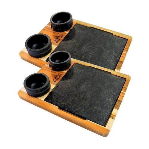 Kit 2 Tábua 04 Molheiras em Pedra Sabão e Suporte P 20x20cm