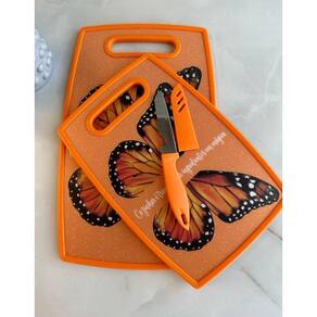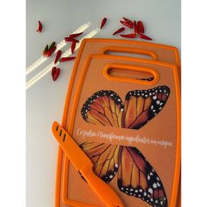 Kit 2 tabuas de corte + 1 faca - ad Cor: laranja Kit 2 tábuas de corte grande e pequena + 1 faca de cozinha - ad
