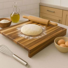 O kit com 2 tábuas em madeira Teca é perfeito para quem ama praticidade na hora de preparar massas, pizzas e pães. Com design funcional, transforma qualquer mesa ou bancada em uma estação de trabalho eficiente e higiênica. Feitas com material resistente e acabamento de qualidade, proporcionam estabilidade e conforto no manuseio da massa, facilitando o preparo de receitas artesanais com um toque profissional. Ideal para uso doméstico ou profissional, o kit oferece versatilidade, durabilidade e muito mais organização na sua rotina na cozinha.