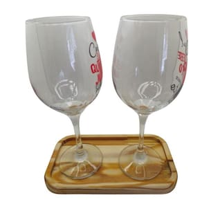 Kit 2 Taças Bandeja Casal Bebe Junto Personalizada Vinho Kit 2 Taças com Bandeja Frase Casal que Bebe Junto Namorados Amor Personalizada Vinho 490ml - Nadir Figueiredo - Barone