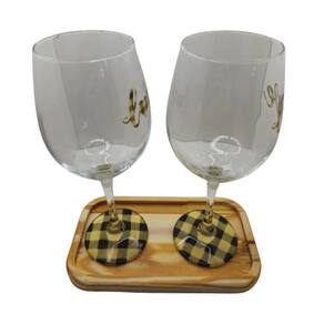 O kit é composto por 2 taças de 490 ml cada e 1 linda bandeja de madeira.