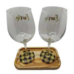 Kit 2 Taças Bandeja Love Personalizado Vinho Amarela 490 Ml