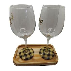 Kit 2 Taças Bandeja Love Personalizado Vinho Amarela 490 ml