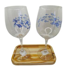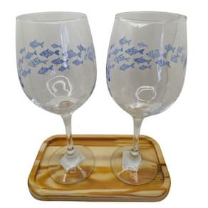 Kit 2 Taças Bandeja Peixes Cristal Personalizada Vinho 490Ml