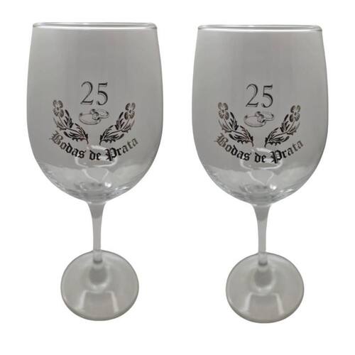 Kit 2 Taças Bodas de Prata 25 Anos Casal Personalizada Vinho Kit 2 Taças Bodas de Prata 25 anos Casal Cristal Personalizada Vinho 490ml - Nadir Figueiredo - Barone