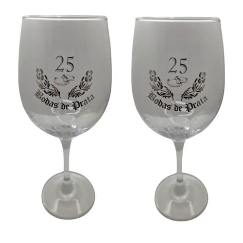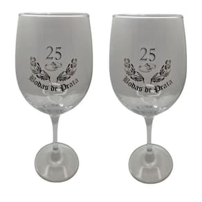 Kit 2 Taças Bodas de Prata 25 Anos Casal Personalizada Vinho Kit 2 Taças Bodas de Prata 25 anos Casal Cristal Personalizada Vinho 490ml - Nadir Figueiredo - Barone
