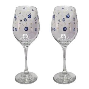 Kit 2 Taças De Vidro Grande 490Ml Vinho Água Olho Grego