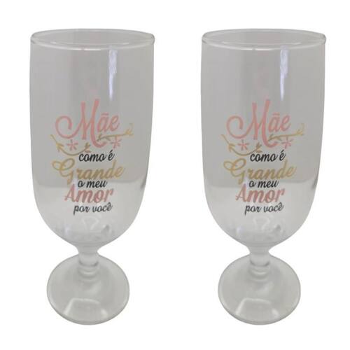 Kit 2 Taças Frase Mãe Personalizada Presente Vidro 300 ml Taça Frase com Bandeja Mãe Amor Personalizada Presente Floripa 300 ml Nadir Figueiredo