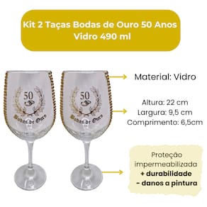Adquira esta Taça maravilhosa e ganhe um lindo presente. Kit 2 Taças Vidro Bodas de Ouro 50 Anos Luxo Personalizada Vinho 490ml - Nadir Figueiredo - Barone