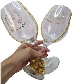 Adquira esta Taça maravilhosa e ganhe um lindo presente. Kit 2 Taças Vidro Bodas de Ouro 50 Anos Rosas Luxo Personalizada Vinho 490ml - Nadir Figueiredo - Barone