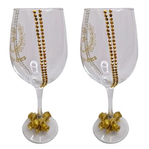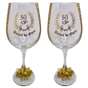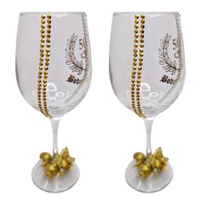 Kit 2 Taças Vidro Bodas de Ouro 50 Anos Rosas Personalizada Vinho 490ml - Nadir Figueiredo - Barone