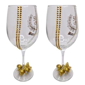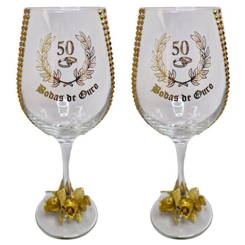 Kit 2 Taças Vidro Bodas de Ouro 50 Anos Rosas + Presente Adquira esta Taça maravilhosa e ganhe um lindo presente.