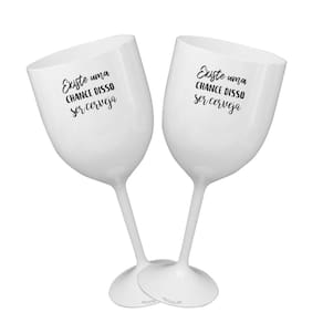 O Kit 2 Taças Vinho Personalizadas Para Live é perfeita para te acompanhar em todas as lives, é resistente e possui um design diferenciado Ideal para personalizar e servir vinho, frisante, água e drinks em geral. Características: Material: Poliestireno Acrílico PS Altura: 20,5 cm Diâmetro: 9,5 cm Capacidade: 400 ml Cor: Branco Ficha técnica - Cor: Branco - Quantidade: 2 peças - Tamanho: Único