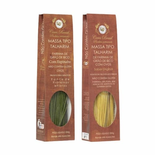 Cada pacote possui 200g de macarrão talharim de grão de bico, que é uma opção sem glúten e rica em nutrientes. O grão de bico é uma leguminosa que oferece benefícios para a saúde, como o fornecimento de proteínas, fibras, vitaminas e minerais.