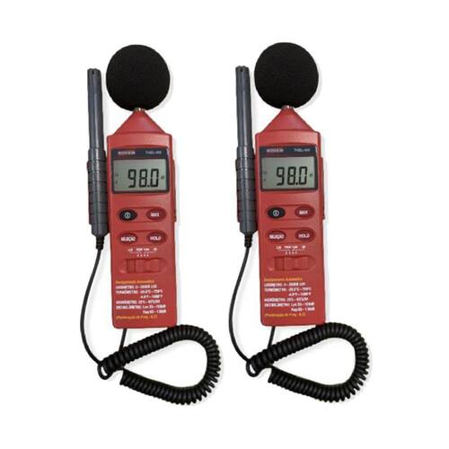 KIT 2 TERMO-HIGRO-SONÔMETRO-LUXÍMETRO DIGITAL PORTÁTIL THDL-400 DESCRIÇÃO: Termo-higro-sonômetro-luxímetro mod. THDL-400 temperatura de -20 a 750°C, Umidade de 25 a 95%U.R., Sonômetro de 35a 130 dB, Luxímetro de 0,01 a 200000 Lux, com função Max. hold DESTAQUES: Fotocélula corrigida para a sensibilidade do olho humano e ângulo de incidência. de acordo com a Norma de Higiene Ocupacional NHO 11 APLICAÇÕES: Este instrumento foi projetado com base nas exigências dos clientes que necessitam de um equipamento multiparâmetros com facilidade na realização de medições de intensidade luminosa, temperatura, umidade relativa do ar e nível de pressão sonora. De custo acessível, compacto e fácil de transportar é o instrumento ideal para uso geral em medições de referência acústica e edificações tais como comparativo de nível sonoro automotivo, diferenças de níveis entre exterior e interior para estudo de isolação acústica de estúdios, auditórios e também referência para isolação acústica de igrejas, boates, instalações de som profissionais além de outras grandezas como medição de intensidade luminosa na área de segurança do trabalho, em medições de locais de trabalho a fim de verificar conformidade com a NR17 e NBR 5413 (para luminosidade), para arquitetura em iluminação de ambientes, laboratórios de óptica, câmaras fechadas, cabines de pintura, iluminação de salas de cinema, medição de umidade relativa e temperatura do ar, temperatura de líquidos e soluções, banhos térmicos, câmaras climáticas, estufas e banho maria. Amplamente utilizado em cursos técnicos, escolas e universidades para demonstrar a teoria de medição e estudos baseados no ruído. ESPECIFICAÇÕES TÉCNICAS: Display: LCD de 3½ dígitos Fabricado em conformidade com a norma EN-55022 Tipo de Luz Medida: Todas as luzes visíveis (exceto LED) Indicação de unidades e funções no display Indicação automática de polaridade negativa Indicação de sobre escala Indicação de bateria fraca Taxa de amostragem: 1,5 vezes por segundo Desligamento automático: Após 10 minutos de inatividade Luxímetro: Escala: 20, 200, 2000, 20000 lux Exatidão: ± 5% da leitura + 10 dígitos (calibradoem lâmpada incandescente padrão à temperatura de cor de 2856 K) Repetibilidade: ± 2% Temperatura característica: ± 0,1% / ºC Elemento foto-sensível: fotodiodo de silício com filtro Sonômetro: Escalas: Ponderação A - LO: 35 ~ 100 dB Ponderação A - HI: 65 ~ 130 dB Ponderação C - LO: 35 ~ 100 dB Ponderação C - HI: 65 ~ 130 dB obs: LO - low: baixo; HI - high: alto Resolução: 0,1 dB Freqüência típica: 30Hz ~ 10kHz Ponderação de freqüência: A e C Ponderação de tempo: Fast (rápido) Exatidão: ± 3,5 dB (nível de 94dB e onda senoidalde 1kHz) Microfone: Microfone de eletreto condensado Higrômetro: Escala: 25% ~ 95% RH Resolução de 0,1% RH Exatidão: ± 5% RH (em 25ºC, > 35% e < 95% RH) Tempo de resposta: Aproximadamente 6 minutos Termômetro: Escalas: -20ºC a 200ºC 20ºC a 750ºC 4ºF a 200ºF 4ºF a 1400ºF Resolução: 0,1ºC / 1ºF Exatidão: ± 3,5% da leitura + 2ºC / 2ºF Proteção de entrada: 60V DC ou 24V AC RMS Temperatura de Operação: 0 a 40°C (0 a 104°F) Umidade de Operação: ?80%U.R. Alimentação: Bateria de 9V (NEDA 1604 ou 6F22) Peso: Instrumento: Aprox. 330g / Fotocélula: Aprox. 80g Dimensões (LxAxP): Instrumento: 252 x 64 x 32,5 mm / Fotocélula: 115 x 60 x 27 mm ACESSÓRIOS FORNECIDOS: 2 - Termo-higro-sonômetro-luxímetro mod. THDL-400 2 - Fotocélula com tampa 2 - Sensor de umidade e temperatura 2 - Sensor termopar 2 - Protetor de vento 2 - Bateria 2 - Estojo para transporte Manual de instruções