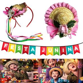 Mini Chapéu De Palha Decorada Festa Junina Acompanha:- 2 Tiara De Festa Junina. Detalhes: Mini Chapéu com Fitinhas Coloridas RendadoMaterial: Tiara plástica, palha, fitas de cetim e aviamentosMedidas aproximadas: 37cm Circunferência da Base x 10mm LarguraTamanho único para adultos ou crianças a partir de 3 anos Ean: 7904390938857