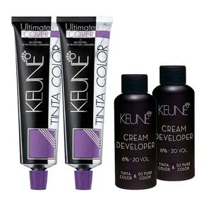 Kit 2 Tintas Keune Ultimate Cover + 2 Ox Cream Dev 6% 20vol - Tom: Nº6.00UC - Louro Escuro