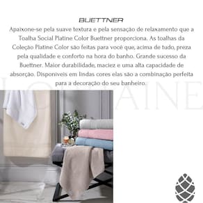 Apaixone-se pela suave textura e pela sensação de relaxamento que a toalha social platine color buettner proporciona. As toalhas da coleção platine color são feitas para você que, acima de tudo, preza pela qualidade e conforto na hora do banho. Grande sucesso da buettner, elas são produzidas em algodão egípcio, proporcionando uma maior durabilidade, maciez e uma alta capacidade de absorção.