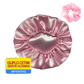 Kit 2 Touca de Cetim Dupla Face Ajustável Antifrizz + Xuxinha - Cor: Rosa