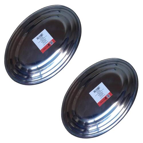 Kit 2 Travessa Bandeja Restaurante Oval Inox 30 cm para Porção Kit contendo 2 Bandejas Ovais em Inox medindo 30 x 21 x 2 cm