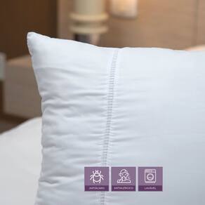 Cada travesseiro do kit é envolto em micro percal 200 fios 100% poliéster, um tecido que oferece um toque acetinado, macio e suave, proporcionando uma sensação de frescor e aconchego durante toda a noite. A alta densidade do tecido também contribui para a durabilidade, tornando-o resistente ao desgaste, mesmo após várias lavagens.