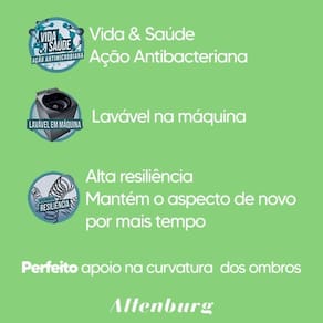 Este travesseiro ajuda a manter a curvatura natural da coluna, com suporte médio, sendo indicado para pessoas que dormem de costas, inodoro e pode ser lavado e secado em máquina. O recheio do travesseiro Suporte Médio possui selo Vida e Saúde, com ação antimicrobiana contra fungos, ácaros e bactérias.
