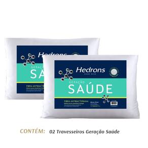 Descrição: Kit 2 Travesseiros Geração SaúdeEste travesseiro promete um sono mais saudável e livre dos ácaros e é especialmente indicado para pessoas com rinite ou sensibilidade respiratória. A moderna nanotecnologia antibacteriana aplicada às fibras do travesseiro tem ação antialérgica e elimina de modo eficaz ácaros, bactérias e fungos.Enchimento: 100% fibras de poliéster antibacterianaCapa: 100% Percal de poliésterEmbalagem em PVC e TNT com encarte Conteúdo da embalagem:2 Travesseiros Geração Saúde 50cm X 70cm