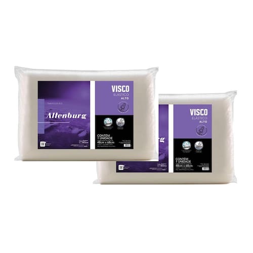 Kit 2 Travesseiros Visco Elástico Alto Altenburg Travesseiro Visco Elástico Alto Altenburg O travesseiro Visco preenche a distância entre o ombro e o pescoço e é ideal para quem dorme de lado. Possui recheio de viscoelástico, com baixa resiliência. - Antipressão: molda-se aos contornos da cabeça, exercendo menor pressão e auxiliando circulação sanguínea. - Termorregulador: não aquece com o calor do corpo. - Antimicrobial: tratamento ultrafresh antiácaros, fungos e bactérias.