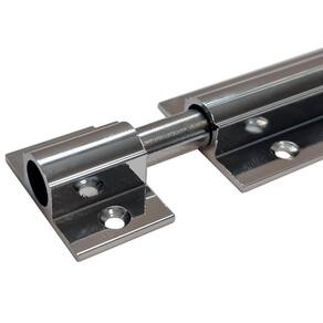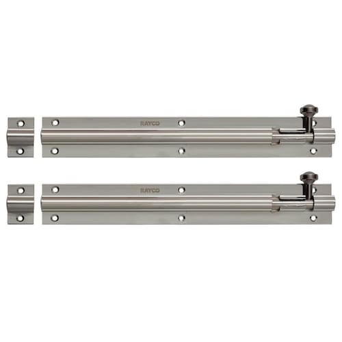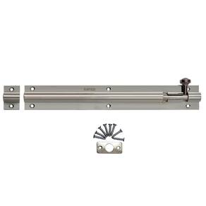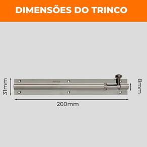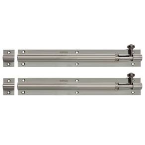 Kit com 2 Trincos 200mm Tarjeta Ferrolho para Porta Fio Redondo 8Pol. Em Alumínio Cromado Rayco O trinco reforçado para portas cromado da Rayco, além de trazer mais segurança, possui um design moderno, deixando sua casa mais sofisticada - Marca: Rayco - Referência: R13485 - Material: Alumínio - Acabamento: Cromado - Comprimento da base: 200mm 8 Polegadas - Largura da base: 31mm - Espessura da chapa: 1,8mm - Diâmetro do Pino: 8mm 5/16 Polegadas - Indicação de uso: portas, portões e janelas - Peso bruto: 165 gramas - Garantia: 90 dias Itens inclusos: - 1 Trinco / Tarjeta - 1 Engate - Parafusos para fixação