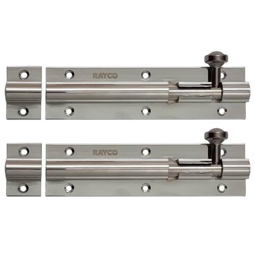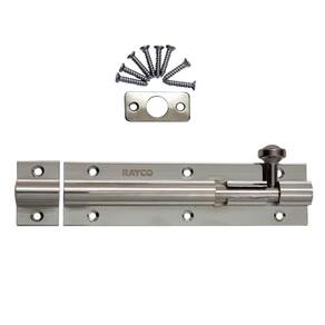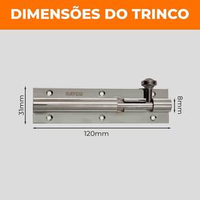 Kit com 2 Trincos 120mm Tarjeta Ferrolho para Porta Fio Redondo 4-3/4 Pol. Em Alumínio Cromado Rayco O trinco reforçado para portas cromado da Rayco, além de trazer mais segurança, possui um design moderno, deixando sua casa mais sofisticada - Marca: Rayco - Referência: R13483 - Material: Alumínio - Acabamento: Cromado - Comprimento da base: 120 mm 4 - 3/4 Polegadas - Largura da base: 31mm - Espessura da chapa: 1,8mm - Diâmetro do Pino: 8mm 5/16 Polegadas - Indicação de uso: portas, portões e janelas - Peso bruto: 110 gramas - Garantia: 90 dias Itens inclusos: - 1 Trinco / Tarjeta - 1 Engate - Parafusos para fixação