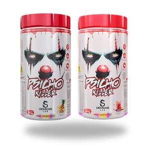 Kit 2 Unidades Pré Treino Psicho Killer 294g Demons Lab Sabor: Fruit Punch e Yellow Blood 2x Pré Treino Psicho Killer 294g Cada Marca Demons Lab