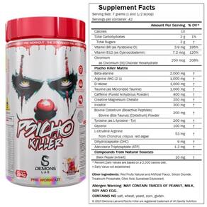 Não recomendado para menores de 19 anos. Não use se estiver grávida, amamentando ou se tiver alguma condição médica pré-existente. Mantenha fora do alcance de crianças. Não exceda a dose recomendada. Consulte um profissional de saúde antes de usar. Desperte o monstro interior e alcance níveis de desempenho que você nunca imaginou serem possíveis com o Psicho Killer Demons Lab. Chegou a hora de dominar seus treinos e conquistar seus objetivos fitness mais ambiciosos