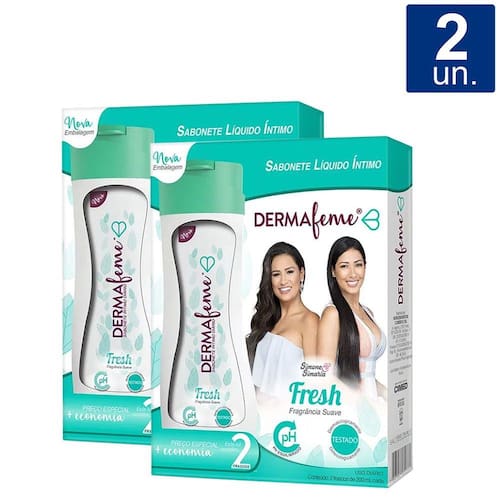 Kit 2 unidades Sabonete Íntimo Dermafeme Fresh é na Drogaria Araujo. Indicado para cuidar da higiene íntima da mulher, proporcionando diariamente agradável sensação de limpeza, conforto e bem-estar. Confira!