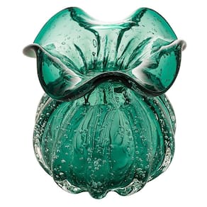 Vaso de Vidro Murano Flor Plantas Arranjos Verde Esmeralda Trouxinha 10x11cm Lemis