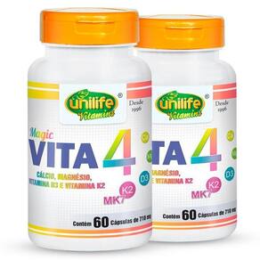 O que é o Magic VITA4 da Unilife É um suplemento multivitamínico composto por cálcio, magnésio, vitamina D e vitamina K2, juntos estes nutrientes formam um quarteto magico, todas essências para o bom funcionamento do corpo, e além de tudo são excelentes os benefícios extras que a boa quantidades dessas substâncias podem causar.