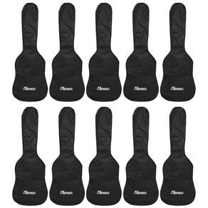 A capa para guitarra Thomaz foi cuidadosamente projetada para transportar e proteger sua guitarra, oferecendo o ajuste perfeito para instrumentos de 39”. Equipada com alça lateral e traseira, proporciona praticidade no transporte, além de um bolso frontal com zíper para armazenamento adicional. Ideal para músicos que valorizam tanto a segurança quanto a conveniência ao transportar seu instrumento.Especificações - Marca: Thomaz- Tamanho: 39”- Cor: Preta- Fechamento: Zíper- Medidas Aprox.: 7,5 x 36 x 100 cmConteúdo da Embalagem- 20 Capas para Guitarra Preta Thomaz*imagens meramente ilustrativas