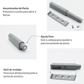 Os Fechos Magnéticos permitem a abertura das portas com muito mais suavidade, através de um toque rápido. Muito mais prático e simples, além de ser um diferencial para seu móvel. Esse tipo de Fecho Magnético tem um pulsador que ao ser acionado, empurra a porta para fora e é usada na maioria dos casos em móveis sob medida.