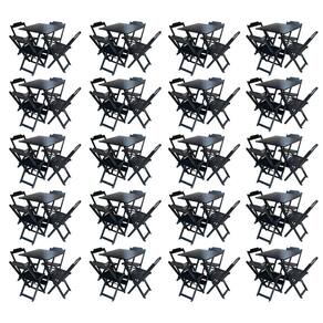 Kit 20 Jogos De Mesa Com 4 Cadeiras De Madeira Dobravel 60x60 Ideal Para Bar E Restaurante - Preto É ideal para bares, restaurantes, estabelecimentos, áreas de lazer e tambem para sua casa. Feito em madeira maciça, tornando resistentes e duráveis. Seu design permite que seja encaixado em qualquer ambiente, trazendo um toque a mais para seu estabelecimento. Além de sua durabilidade, o que lhe trará conforto para servir seus clientes. Por ser dobrável torna-se mais fácil guardar, manusear e limpar o produto.