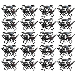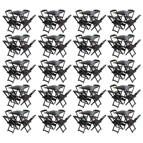 Kit 20 Jogos De Mesa Com 4 Cadeiras De Madeira Dobravel 60x60 Ideal Para Bar E Restaurante - Tabaco - Preto