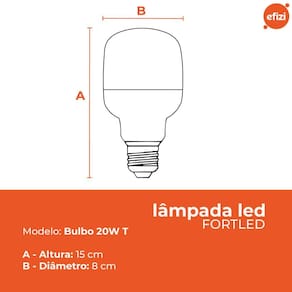 Acompanha: Kit 20 Lâmpadas Led Branca 20W T80 Bulbo Fortled