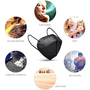 Mascara KN95 é uma excelente opção para quem procura ter conforto usando máscaras por longos períodos e também para proteção de poluição, gás residual, fumaças industriais, entre outros. Máscaras modelo KN95. Dispõe de dois elásticos laterais, que se destinam ao apoio e ao ajuste atras das orelhas dos usuários. A máscara protege desde o topo do nariz até o queixo, cobrindo a maioria das conformações faciais conhecidas e mantendo-as protegidas. Permite respiração suave. Uso individual e doméstico. Material leve e confortável. 95% de eficiência contra partículas, germes e vírus.